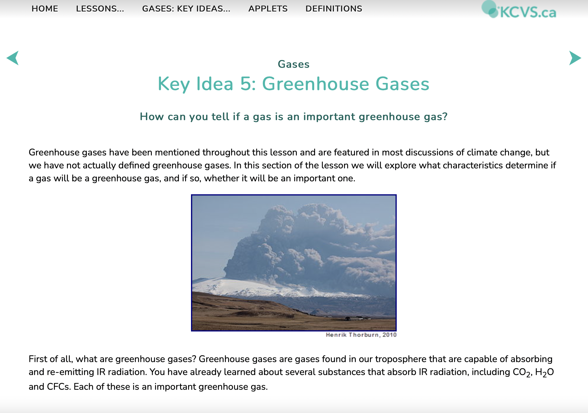 The gases unit introduces the composition of air, layers of the atmosphere, properties of gases, kinetic molecular theory, electromagnetic radiation, collisional de-excitation, infrared spectroscopy, greenhouse gases, Earth’s energy imbalance, and the IR spectrum of molecules.